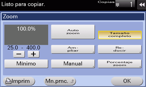 [Tamaño completo] | Toque este botón para copiar una imagen original con el mismo tamaño que para el original (x1.0). |