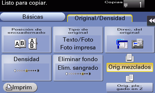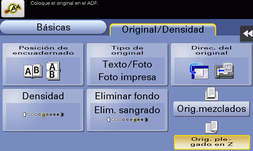 Toque [Original/Densidad] - [Orig. plegado en Z].