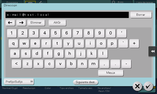 Introduzca una dirección de correo electrónico de destino cuando se envíen datos de originales escaneados como datos adjuntos al e-mail.