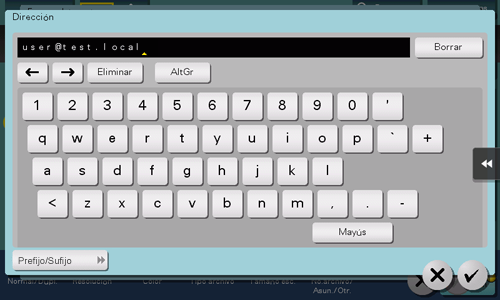 [Dirección] | Introduzca una dirección de correo electrónico de destino. |