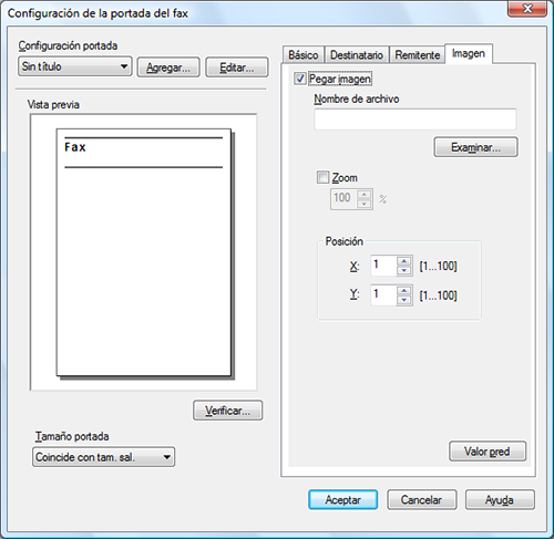 Para añadir una imagen, especifique un archivo de imagen en la ficha [Imagen].