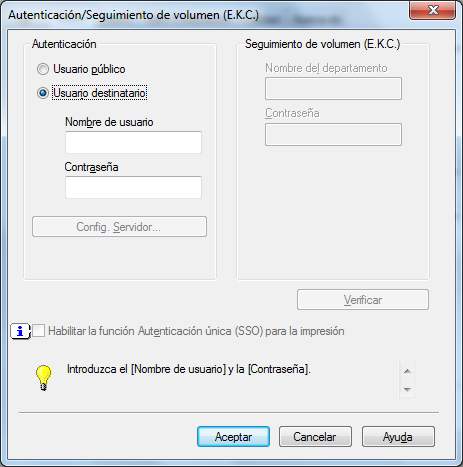 Si está activado el seguimiento de cuenta, introduzca el nombre de cuenta y la contraseña.