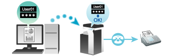 Si ya se han empleado la autenticación de usuario y el seguimiento de cuenta, cada usuario necesita enviar su información de autenticación (el nombre de usuario y contraseña) a esta máquina al enviar PC-Fax. Esto limita a los usuarios que pueden enviar PC-Fax a través de la máquina y evita el uso no autorizado de terceros.