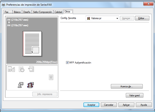 Para llevar a cabo la autenticación MFP cuando se utiliza conjuntamente con la autenticación con servidor externo, seleccione la casilla de verificación [MFP Autentificación] en la ficha [Otros].