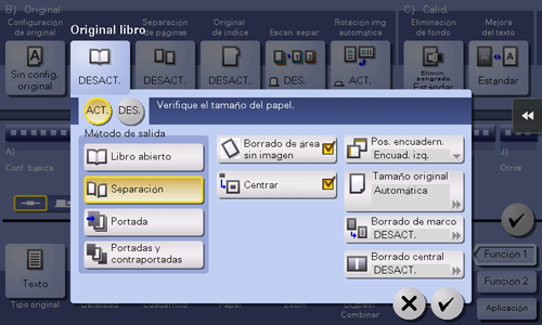 [ACT.]/[DES.] | Seleccione [Act.] para especificar Original libro. |