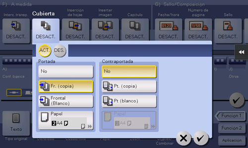 [ACT.]/[DES.] | Seleccione [Act.] para especificar Cubierta. |