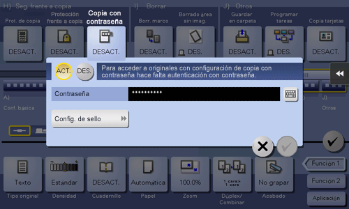 [Patrón de copia con contraseña] | Especifique el contrato de un patrón de protección de copia con contraseña si es necesario. | |