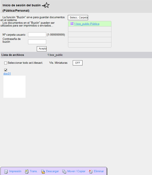Web Connection permite descargar en un ordenador archivos de la carpeta de usuario pública. Para obtener más información, consulte Aquí.