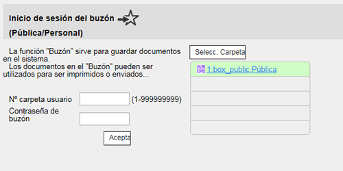 Haga clic en [Carpeta] - [Inicio de sesión del buzón].