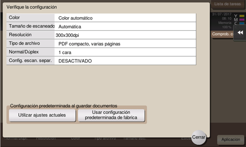 Toque [Usar configuración actual] en [Configuración predeterminada al guardar documentos].