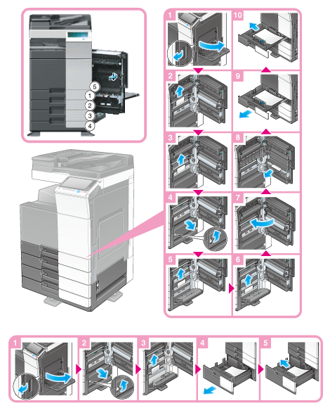 Pour retirer des morceaux de papier du magasin (Magasin 3/4) (uniquement sur les bizhub C658/C558/C458)