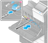 Rilasciare la Leva di chiusura del contenitore toner di scarto e rimuovere il Contenitore toner di scarto.