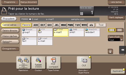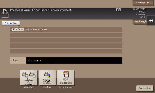 Vous pouvez changer les réglages pour [Résolution], [Couleur] et [Type de fichier].
