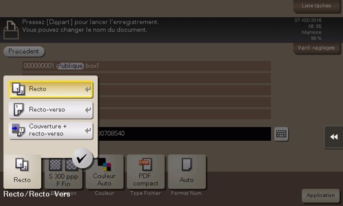 Appuyez sur [Recto/recto-verso], puis appuyez sur [Recto-verso].