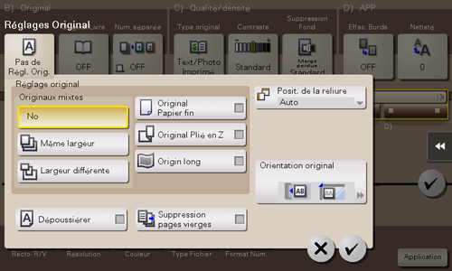 Appuyez sur [Application], puis sélectionnez [Paramètres original].
