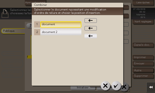 Changez l'ordre des fichiers à imprimer ou envoyer si nécessaire, puis appuyez sur [OK].