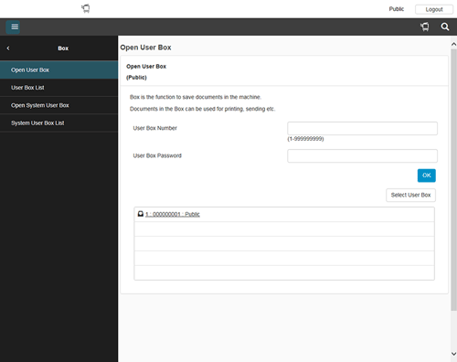 Cliquez sur [Boîte] - [Ouvrir boîte utilisateur].