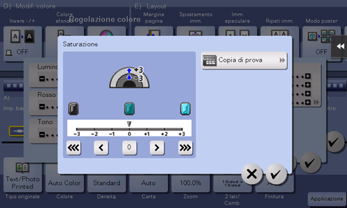 [Copia di prova] | È possibile verificare la finitura stampando una copia di prova. Caricare l'originale sul vetro originali, quindi premere [OK]. |