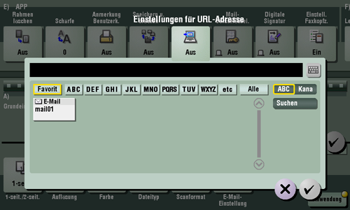 Tippen Sie auf [Anwendung] - [APP] - [URL-Zieleinstellung] und wählen Sie eine E-Mail-Adresse als Benachrichtigungsziel aus.