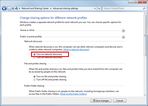 Wählen Sie vor der Installation im Start-Menü nacheinander [Systemsteuerung] - [Netzwerk und Internet] - [Netzwerk- und Freigabecenter] - [Erweiterte Freigabeeinstellungen] aus und überprüfen Sie, ob [Netzwerkerkennung] aktiviert ist.