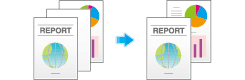 Im Folgenden wird eine Vorgehensweise beschrieben, mit der mehrere 1-seitige Originale kopiert werden, wobei zwei Seiten auf dieselbe Seite eines einzigen Blatts verkleinert und auf beiden Seiten des Papiers gedruckt werden.