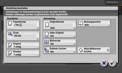 Tippen Sie gegebenenfalls auf [Einstellung bearbeiten], um die Kopiereinstellungen an das neue Original anzupassen.