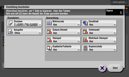 Geben Sie die gewünschten Ausgabeeinstellungen an und tippen Sie dann auf [Start].