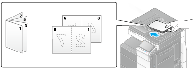 Um [Broschürenoriginal] verwenden zu können, sind der optionale Finisher und Broschürenfinisher erforderlich.