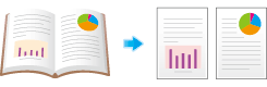 Kopieren Sie Doppelseiten, z. B. eines Katalogs, bei dem die Heftklammern entfernt wurden, separat in die linken und rechten Seiten.