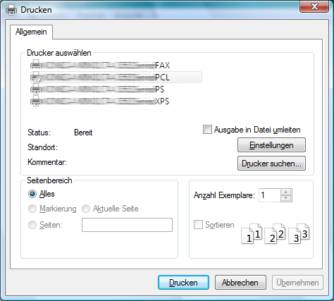 Das Aussehen des Dialogfelds [Drucken] ist in Abhängigkeit von der verwendeten Anwendung unterschiedlich.