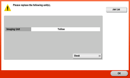 When the time to replace a Toner Cartridge or Imaging Unit has come, a replacement prompt message appears. Replace a Toner Cartridge or Imaging Unit based on the maintenance contract.