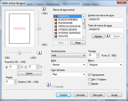 [Color de texto] | Seleccione el color para la marca de agua. |