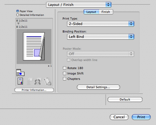 En [Layout / Finish], puede definir los ajustes del diseño o del acabado de la impresión. Es posible combinar páginas y ajustar las posiciones de impresión.