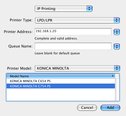En Mac OS X 10.3, seleccione [LPD/LPR] en [Printer Type:].