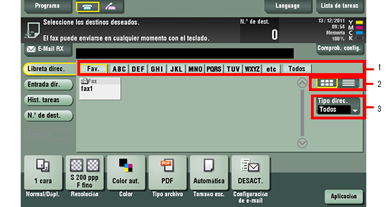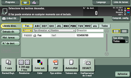 Si hay muchos destinos registrados, busque un destino por el nombre de registro por el número de fax.