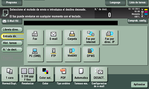 Si selecciona varios destinos, puede enviar datos por transmisión de difusión. También puede utilizar transmisión por difusión combinando diferentes modos de envío, como transmisión de fax y envío SMB.