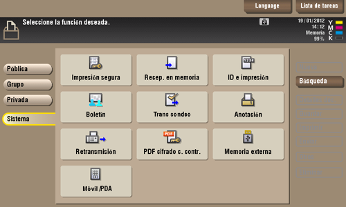 Una vez registrada, puede componer una imagen de superposición en el original y copiarla seleccionado [Aplicación] en el modo Copia y [Superposición registrada]. Además, al imprimir un archivo desde una carpeta de usuario, es posible componer una imagen de superposición al archivo e imprimirla seleccionando [Aplicación] - [Superposición registrada].
