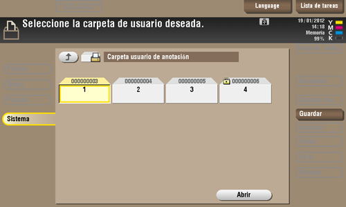 Seleccione la carpeta de usuario deseada y, a continuación, toque [Abrir].