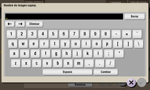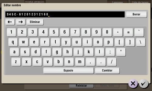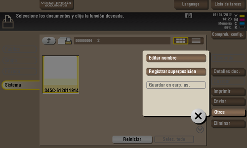 Seleccione un archivo y, a continuación, toque [Otros] - [Editar nombre]. Ahora puede renombrar el archivo. Introduzca un nuevo nombre mediante el panel táctil.