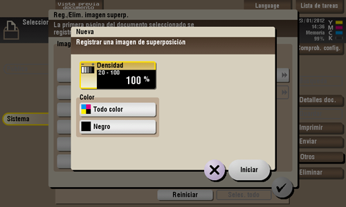 Configure una densidad y color de la imagen si es necesario y, a continuación, toque [Iniciar].
