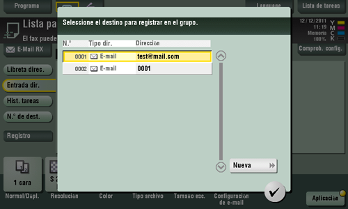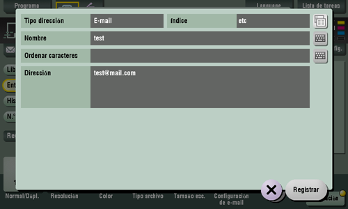 Una vez que finalice una transmisión de fax al destino especificado mediante entrada directa, toque [Libreta direc.] y compruebe que el destino está registrado.