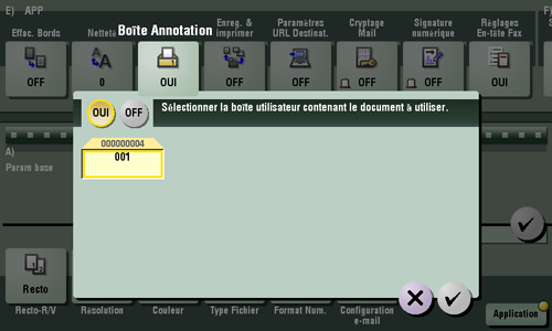 Si Boîte Annotation est sélectionné, les originaux sont envoyés en ajoutant un numéro d'organisation.