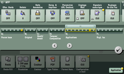 [Papier Copié] | Tapez sur ce bouton pour numériser au niveau optimal de qualité image des originaux présentant une densité uniforme et qui ont été imprimés sur un copieur ou une imprimante. |