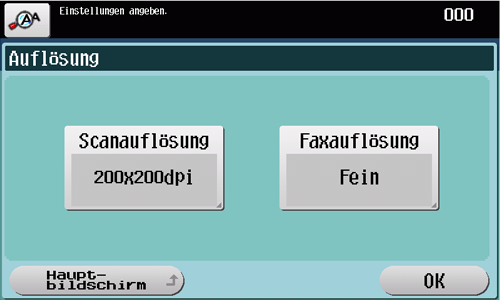 Tippen Sie auf [Scaneinstellungen] - [Auflösung].