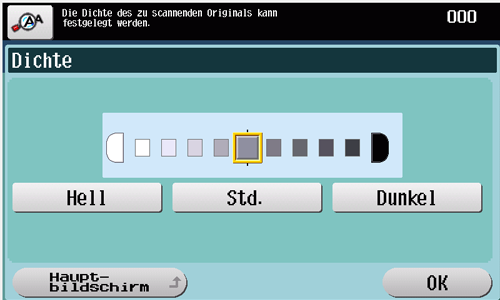 Tippen Sie auf [Scaneinstellungen] - [Dichte], um die Bilddichte zum Scannen des Originals anzupassen.