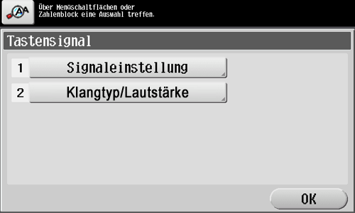 Wählen Sie aus, ob Tastenton- oder Warnsignale ausgegeben werden sollen. Legen Sie auf Wunsch den Typ und die Lautstärke des Signals fest.