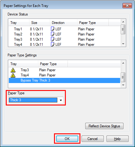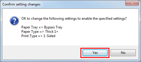 Check the paper tray and paper type settings automatically changed, then click [Yes].