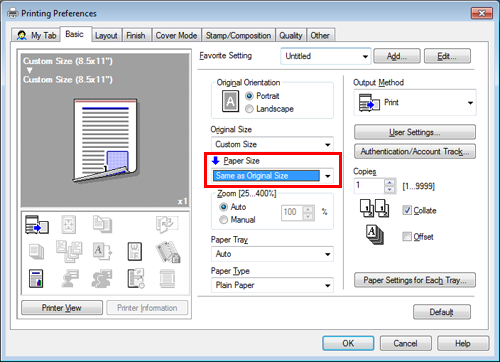 In [Original Size] on the [Basic] tab, select [Custom Size].