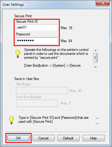 Enter the [Secure Print ID] and [Password], then click [OK].
