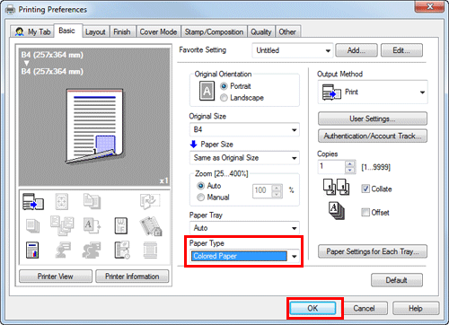 In [Paper Tray] on the [Basic] tab, select one other than [Auto].